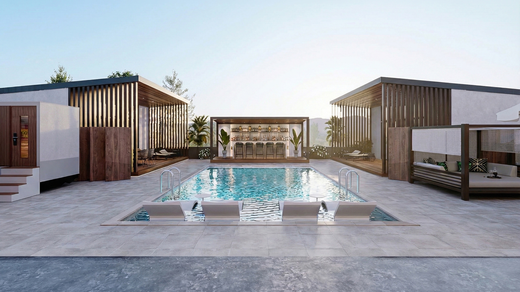 We participated in a design competition for a hotel project in Hyogo Prefecture. We provided the design planning and design services for outdoor facilities brimming with a resort atmosphere centered around a pool, as well as guest rooms designed in pursuit of ultimate comfort and relaxation.