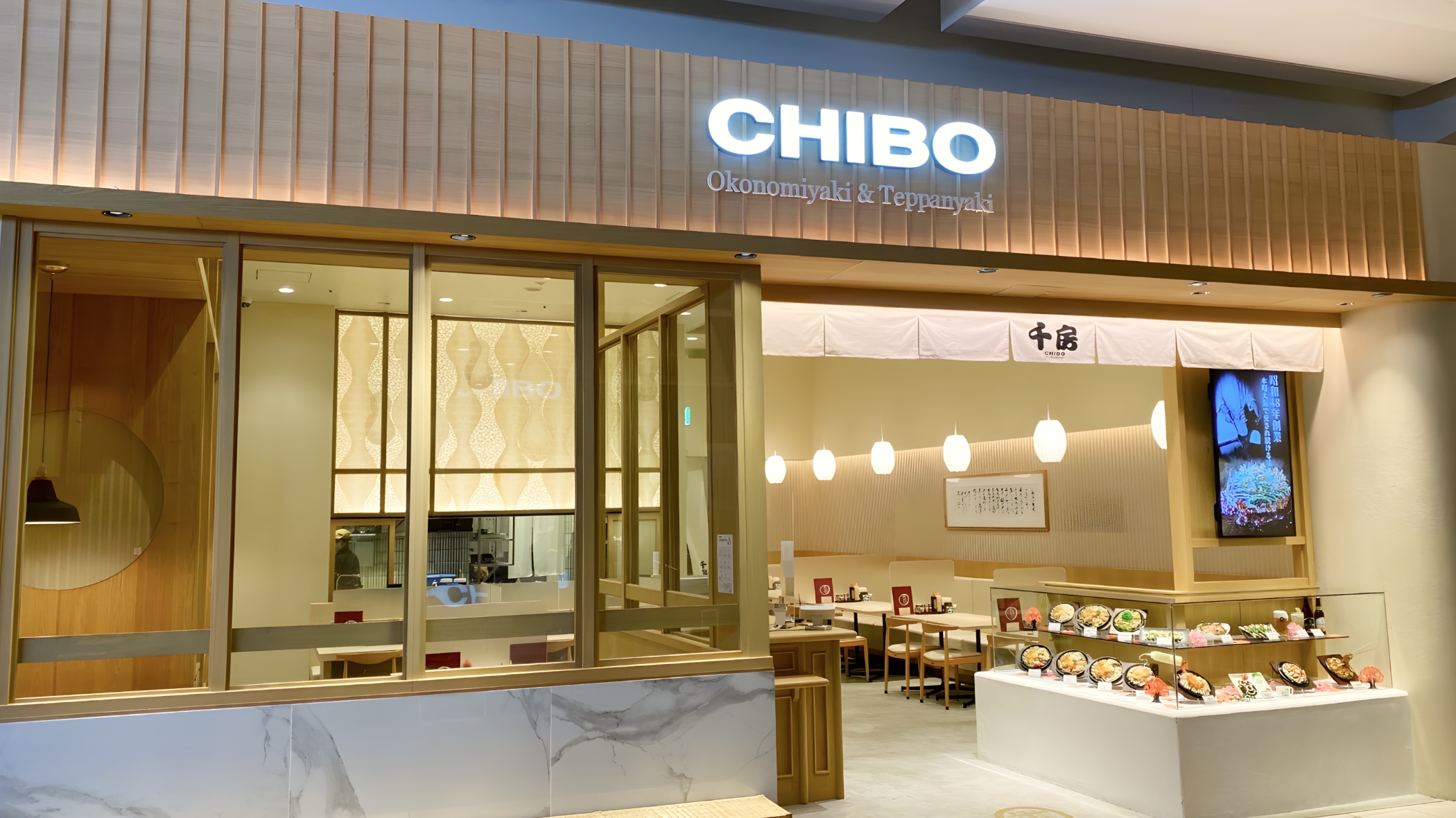 イオンレイクタウンmori内の「お好み焼 千房」において、設計、建築工事に加え、電気・機械設備、FFE(家具)工事に至るまでを一気通貫で担当。「楽しくくつろげる時間」をコンセプトに、和の伝統美と現代的な感性が融合した「和モダン」な意匠を追求しました。