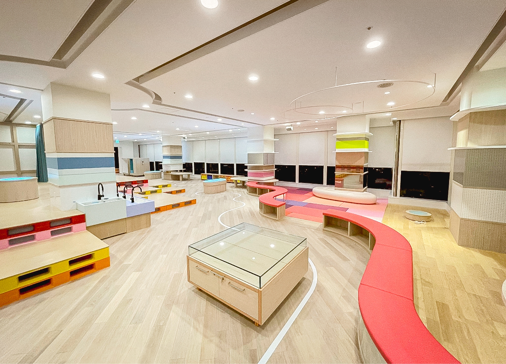 星野リゾート「リゾナーレ大阪」の核となるアトリエ、および一部客室のFFE工事を元請けとして担当。イタリア発の教育思想「レッジョ・エミリア・アプローチ」を取り入れた独創的な空間に対し、子どもたちが自由に表現し学べるよう設計された家具を精緻に配置しました。
