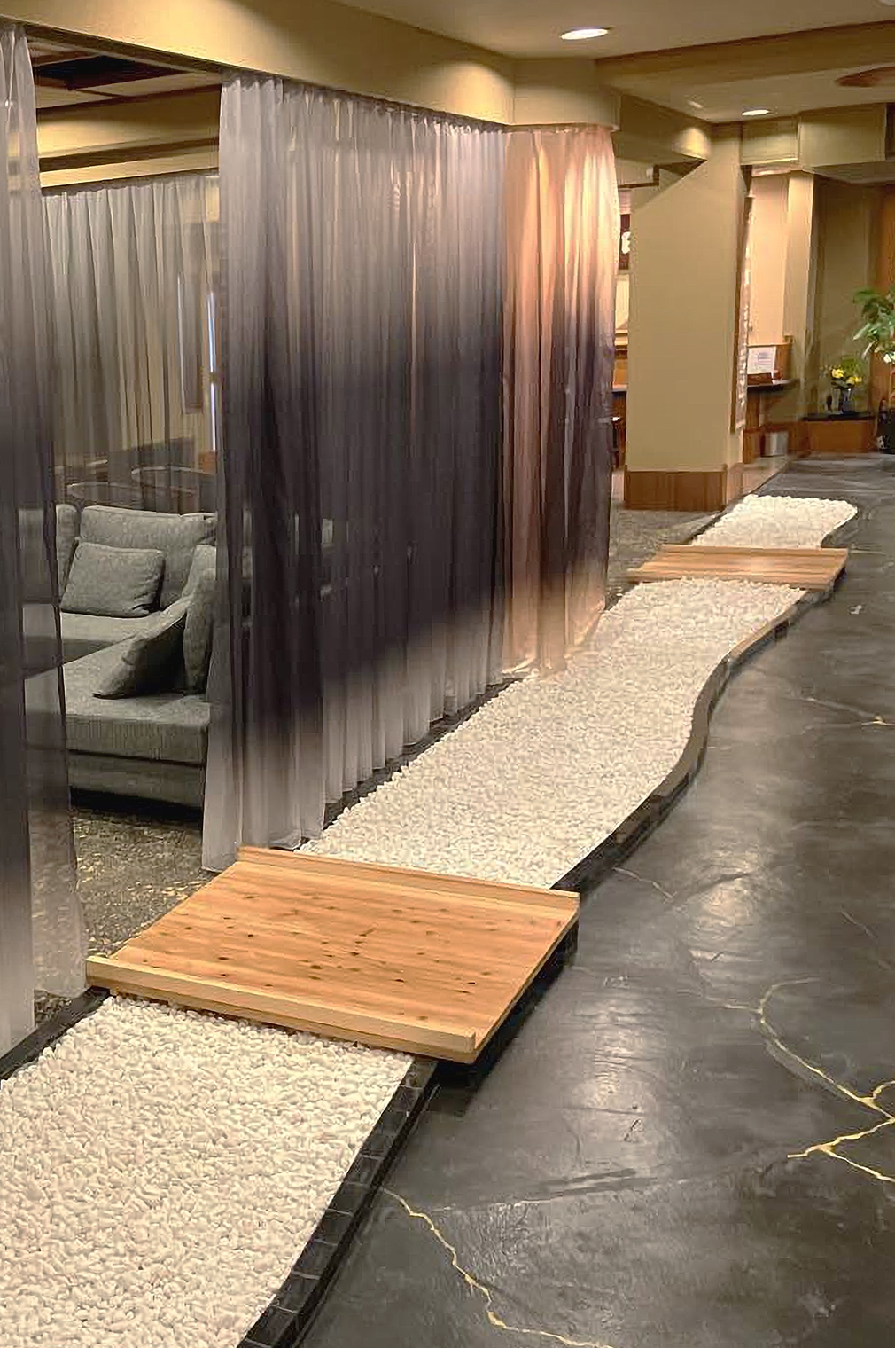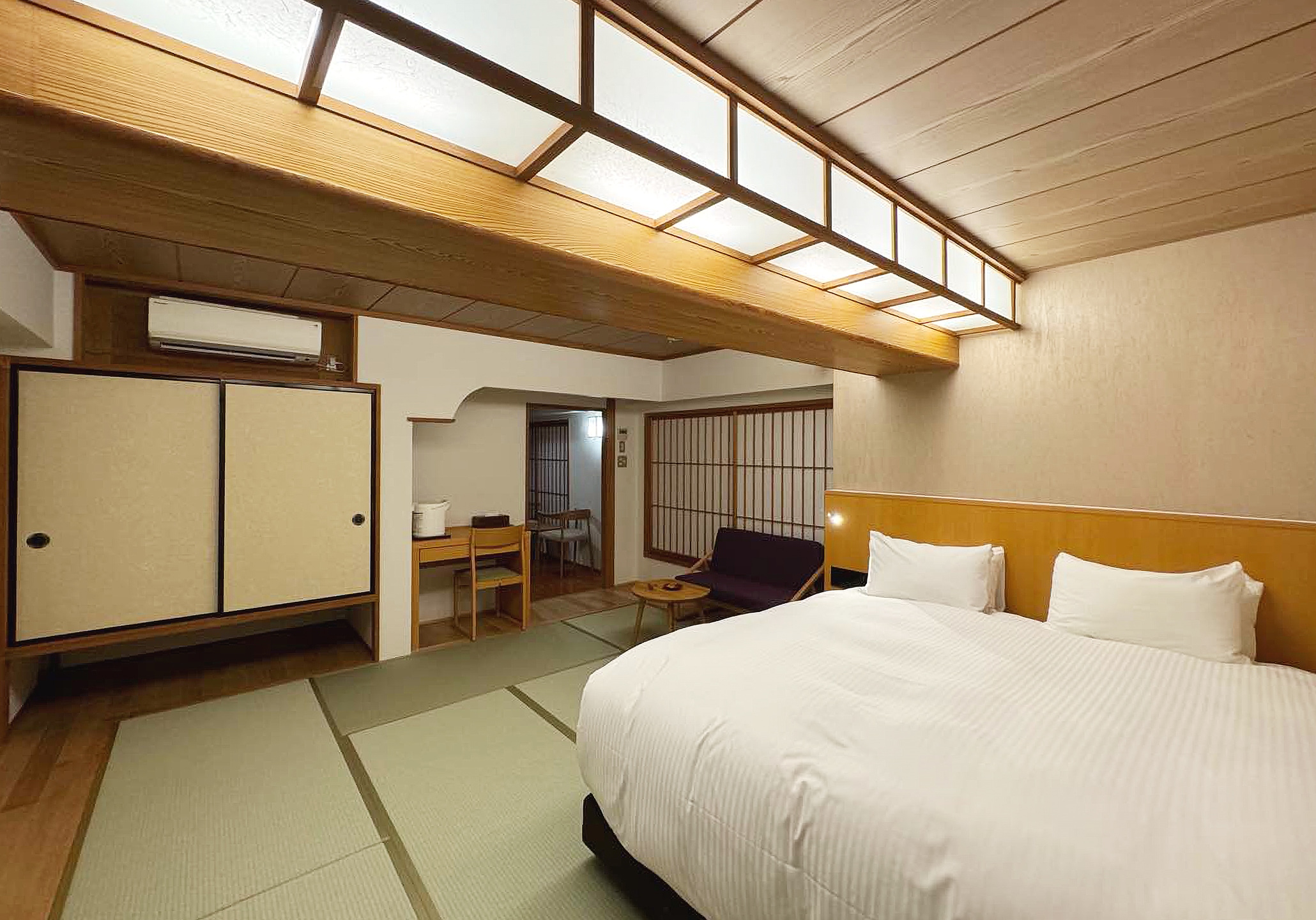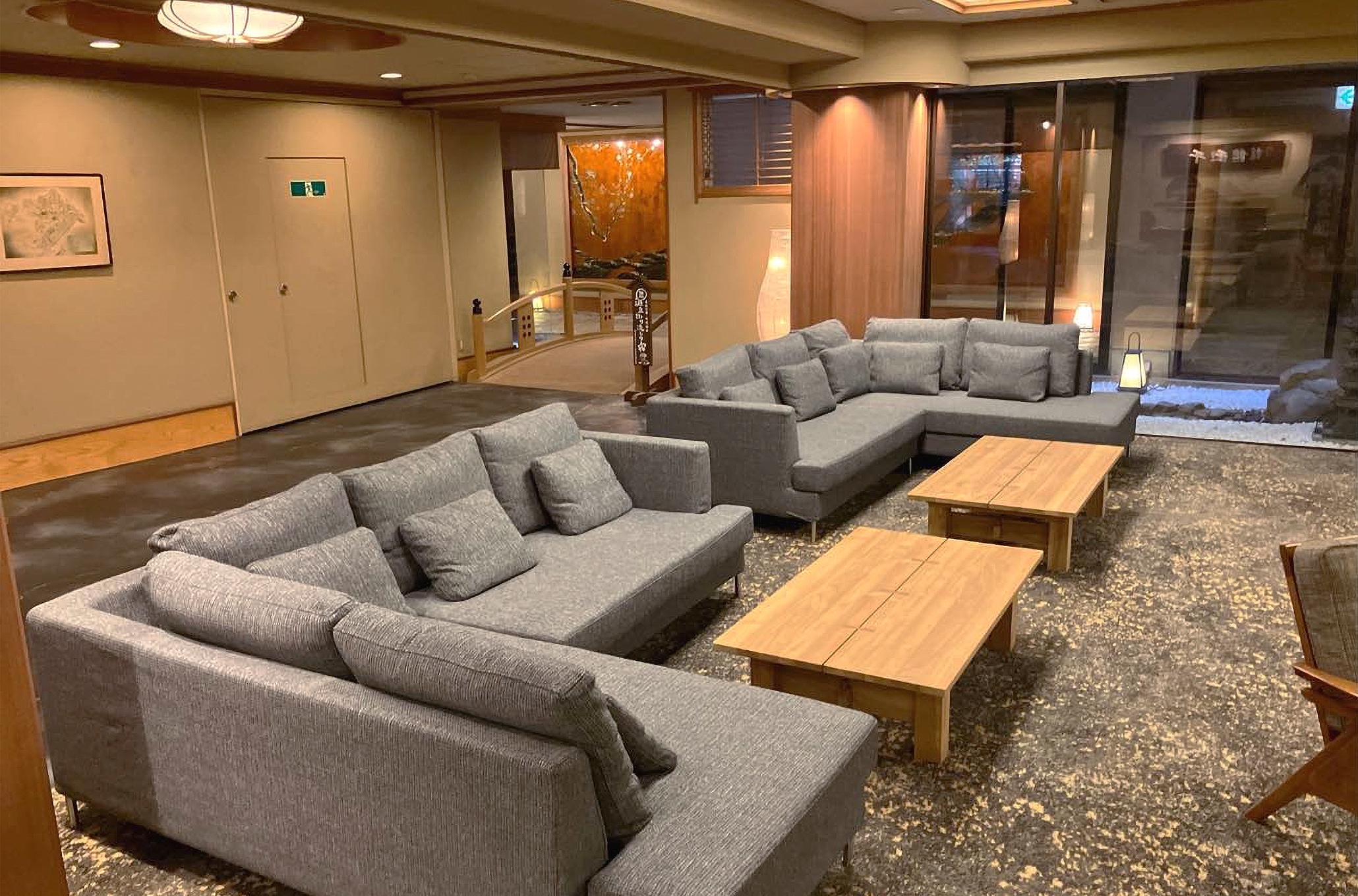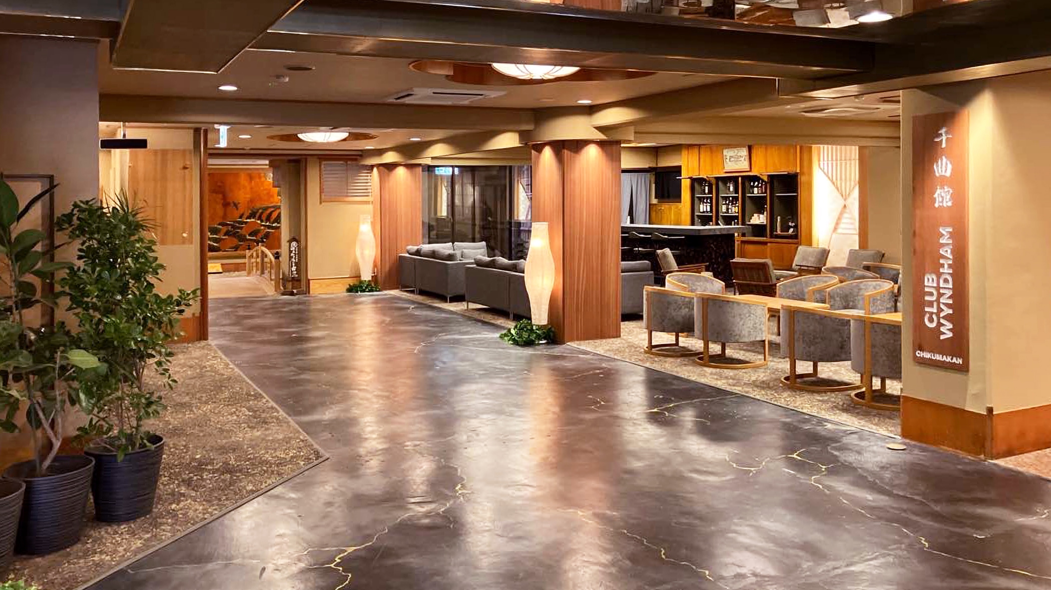 長野県・戸倉上山田温泉の「クラブウィンダ千曲館 長野」改修プロジェクトに参画。客室、ロビー、パブリックスペースの設計・内装工事、および細部の意匠を司る造作工事を元請けとして担当しました。