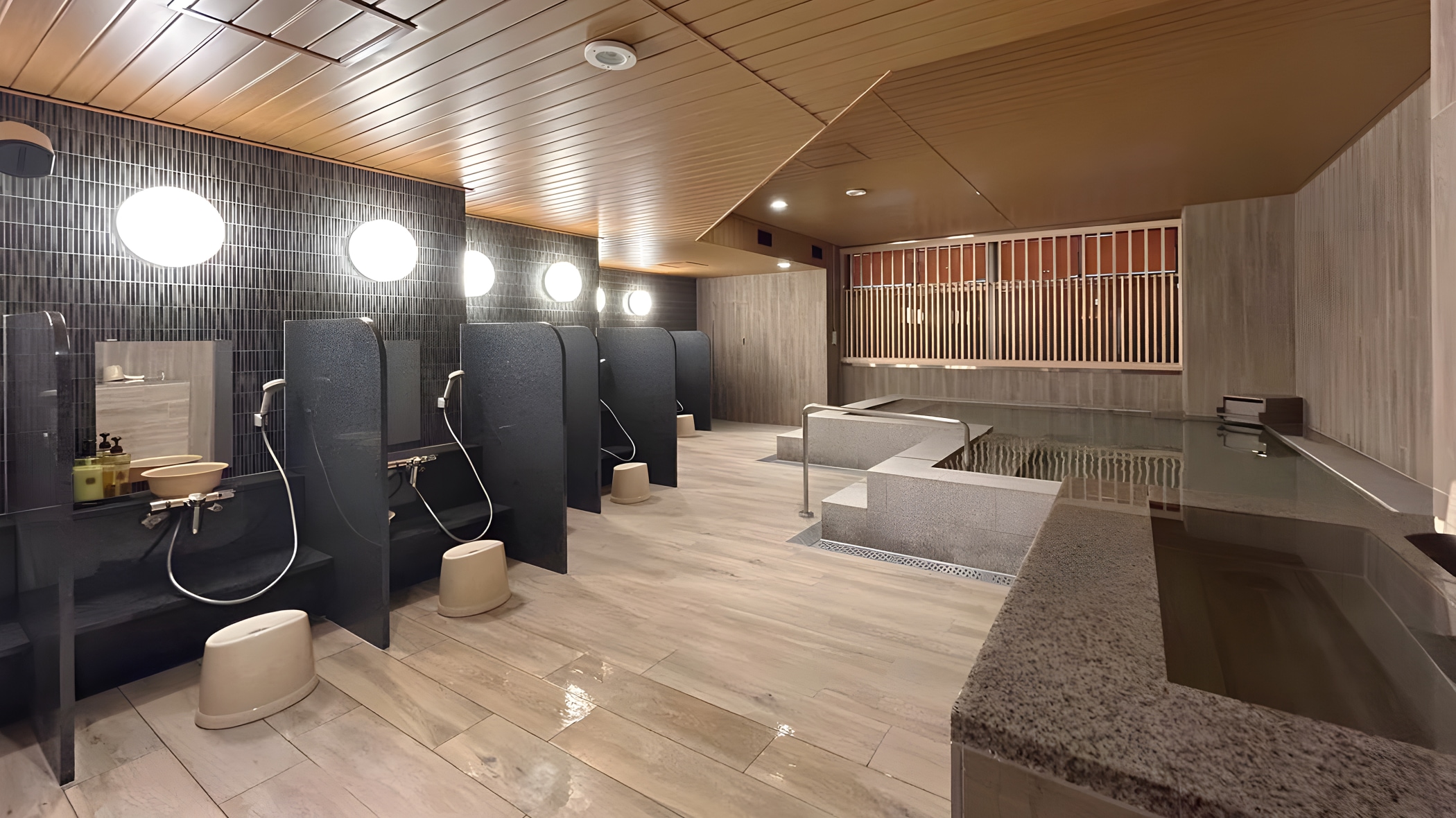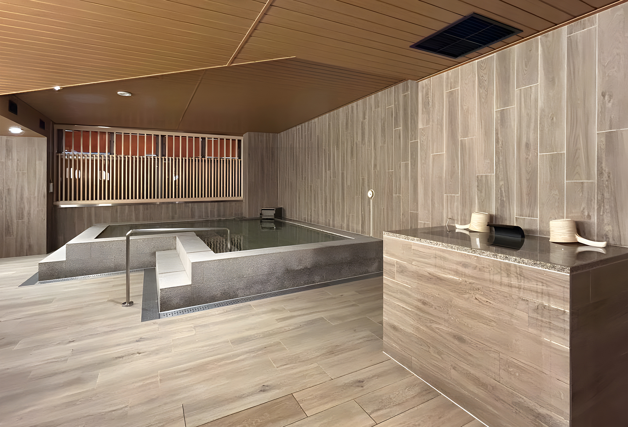 フロントから温浴施設へと続く流れるような動線設計を軸に、ロビーから客室に至るまで、設計・デザインから設備、FFE、サイン工事に至るまでをANDasが一気通貫で手掛けました。